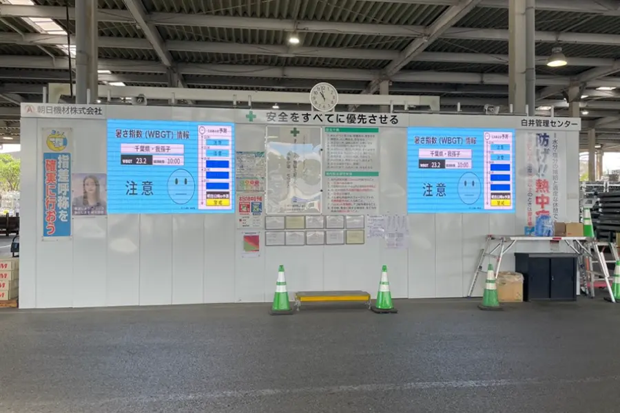 建設業での熱中症発生割合は全業種の約5割を占めています。管理センターでは、夏場は1時間に1度の休憩、ミストシャワーの設置など万全な熱中症対策を行っております。