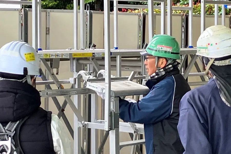 当社から提供している仮設材を適切にご使用頂く為、社員が現場に赴き、正しい組み立て方法、使用上の注意を説明致します。仮設材知識の向上が、同時に安全意識の向上に繋がると考え、お客様と共に安全の実現を目指します。