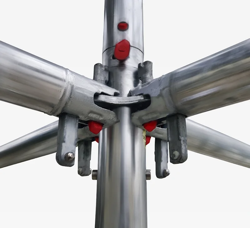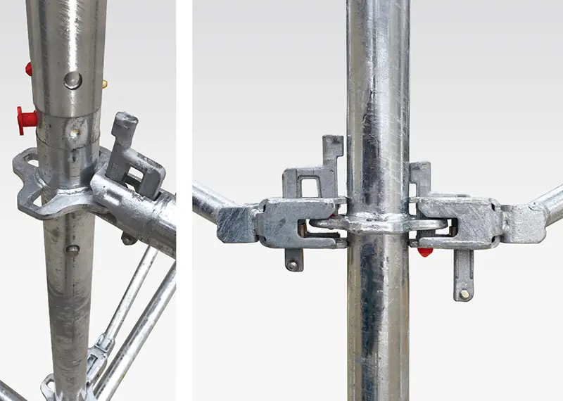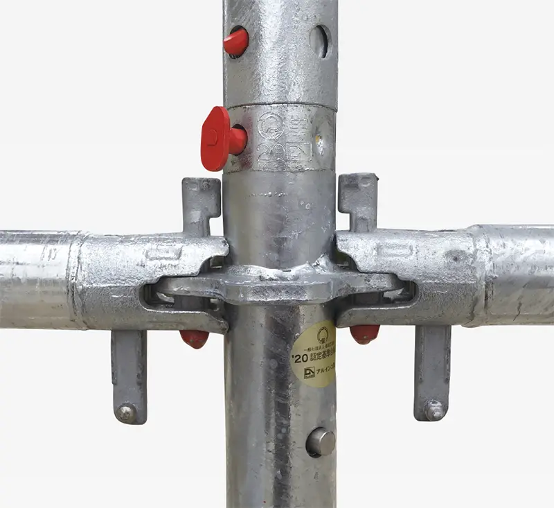 支柱、布材、先行手すりなどのロック部や緊結部をカラーリングすることで、足場点検時に目視でチェックすることが可能です。
