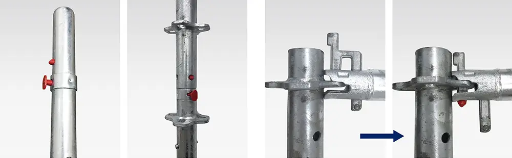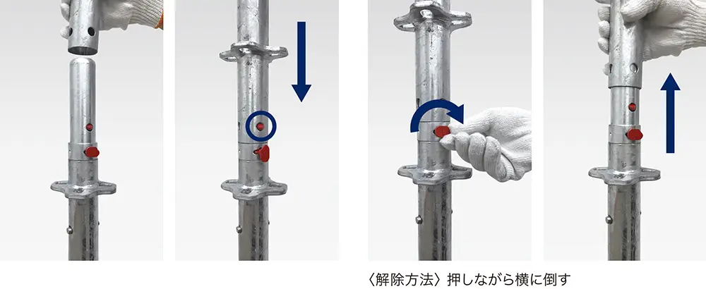 連結ピンに支柱を被せるだけで、自動にロックが掛かります。